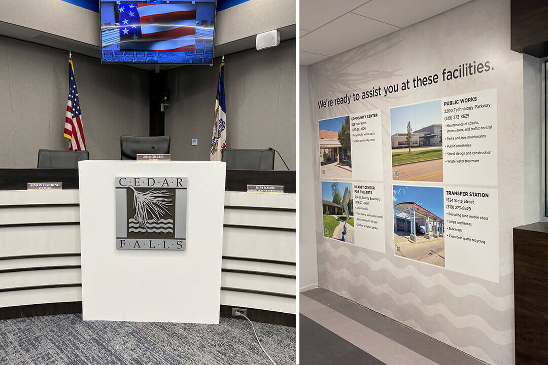 Cities and towns require a vast array of signage. We have many years of experience providing signs for town identification, airports, parking ramps, government buildings, parks and bike trails. Our innovative design staff, fabrication and installation team will help bring out the best in your community.